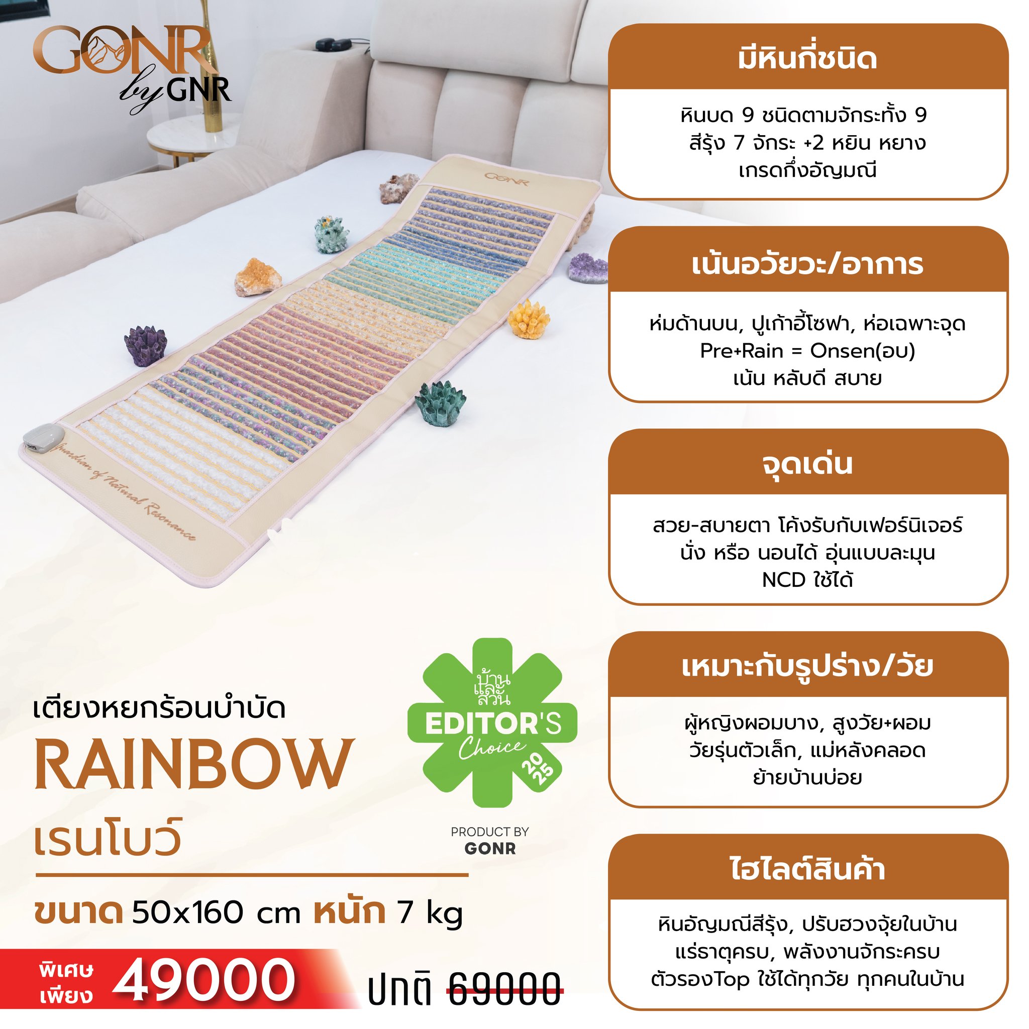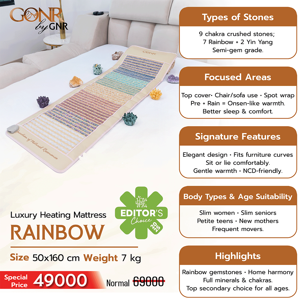Model: Full-length Sleeping / Exercising-Heating Mattress / Size: 50 X 160 x 2.2 cm. / Weight 7 kg. / 9 Types of Stones